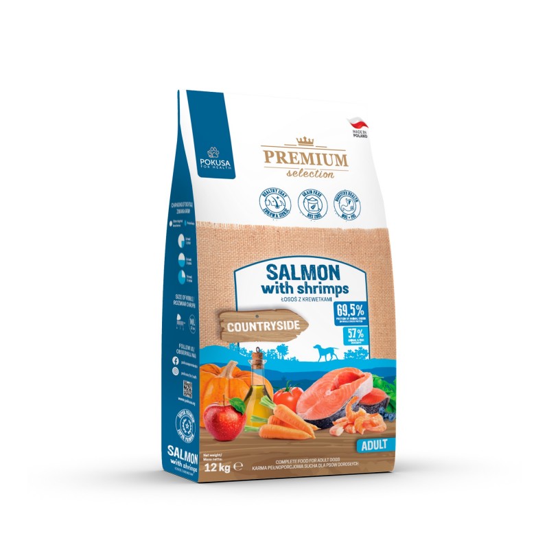Premium Selection Countryside - getreidefreies Trockenfutter - Lachs mit Garnelen für ausgewachsene Hunde.